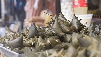 糯米、红枣、花生、咸肉……各种馅料被包裹在翠绿的粽叶中,煮熟后散发出诱人的香味。